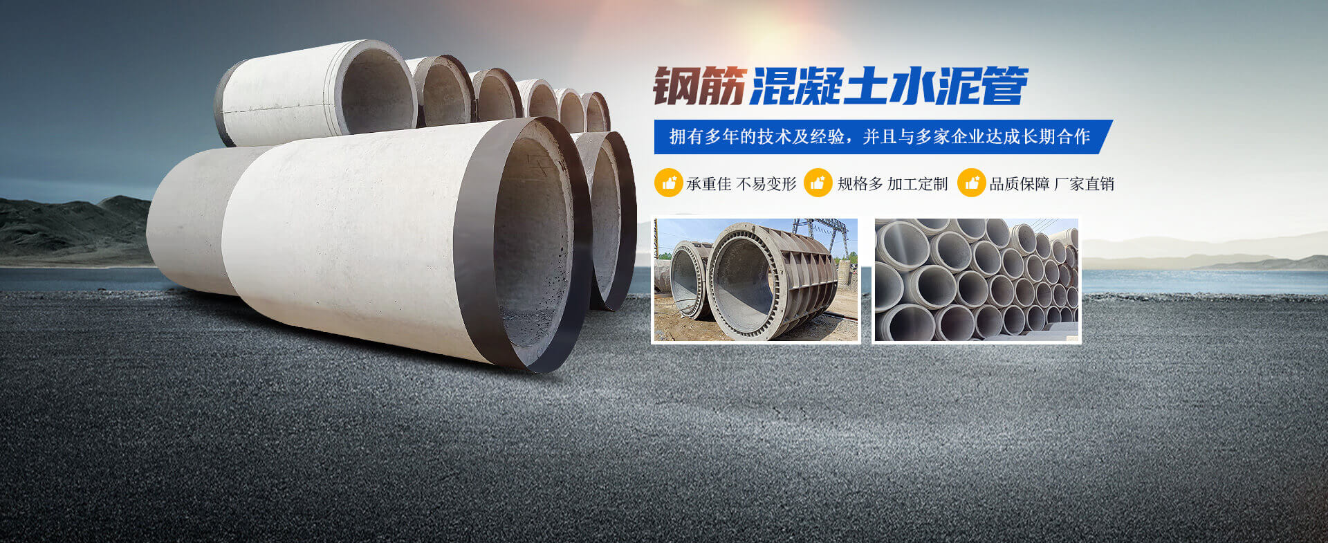 洛陽運曌建筑材料有限公司專于從事水泥制品開發、制作、生產、銷售、工程服務為一體的綜合性企業。主要生產鋼筋混凝土排水管、鋼承口頂管、承插管、平口管、雨污井蓋、路沿石、水泥預制板、仿木圍欄護欄系列、畜牧系列等混凝土水泥預制品。  我公司生產的鋼筋混凝土排水管是依據執行標準GB/T11836-2023生產檢驗、擁有三條懸輥工藝生產線;型號300-3000;年生產能力達30000米左右,質量是企業之本.........了解更多>>